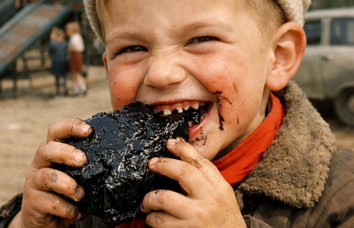В советские времена, особенно в 70-е и 80-е годы, на улицах можно было часто увидеть детей с черными от смолы зубами и лицами. Несмотря на родительские запреты и наказания, ребятишки продолжали лазить на стройки и находить там загадочные черные "камни" с блестящей поверхностью.