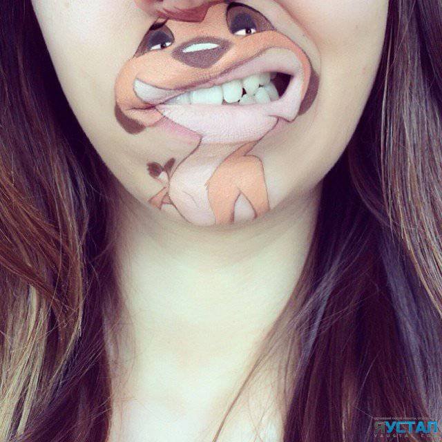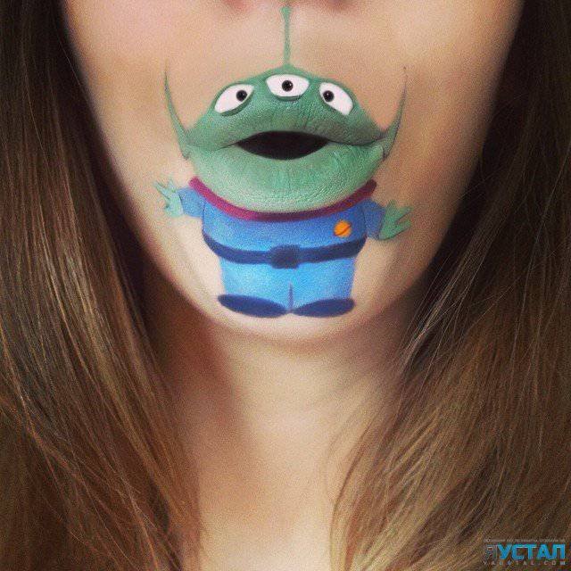 25-летняя девушка Лаура Дженкинсон (Laura Jenkinson), проживающая в Лондоне, решила внести в профессию немного веселья и сказочного позитива. Используя свои губы, помаду и театральный грим, она создает на лице чудесных зверушек и полюбившихся персонажей из знакомых всем мультфильмов. И стоит лишь двинуть губами и улыбнуться, как рыбка Немо, ленивец Сид, Гуфи или Дональд Дак оживают и обретают свой неповторимый характер.
