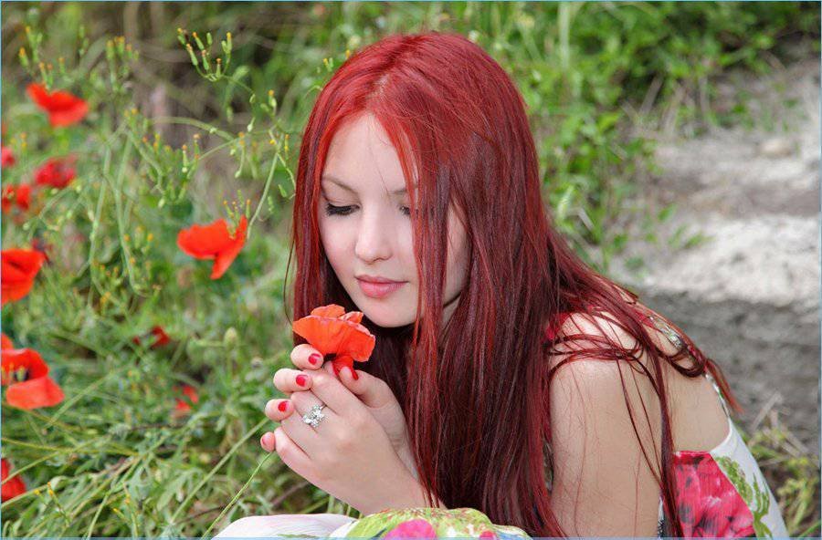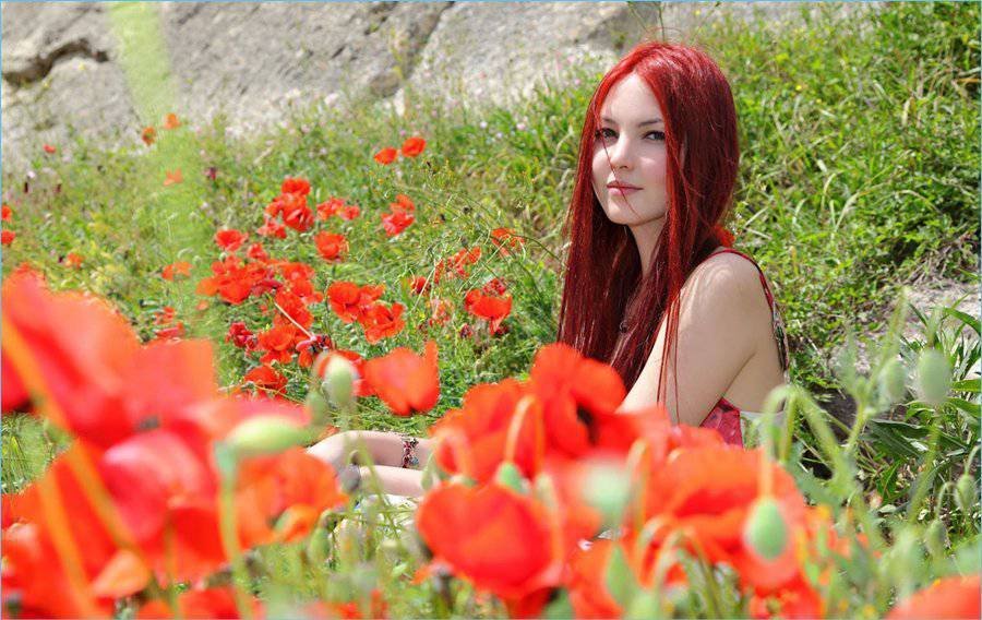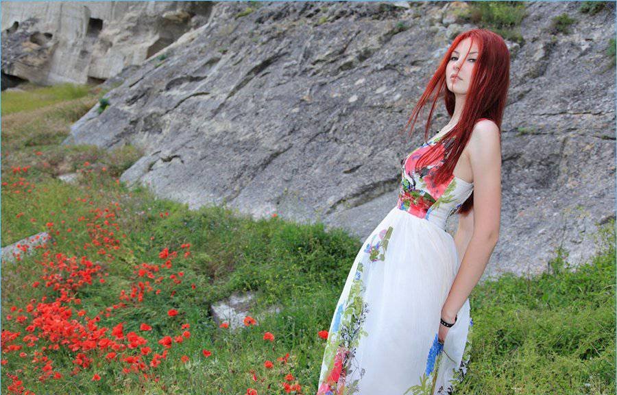 Когда рыженькая девчонка отправилась прогуляться на природу, то нашла очень отличное место, где растут красивые полевые цветы и открывается прекрасный вид на горы. Она не смогла удержаться, чтоб не раздеться наголо. Хочет немного себя побаловать солнечными лучами и заодно снимает платье. Теперь открывается прекрасный вид на …