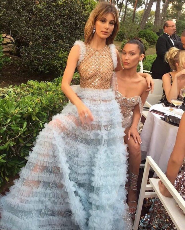 19-летняя модель и актриса из Аргентины Камила Морроне (Camila Morrone) в просвечивающем платье на вечере amfAR в Каннах.