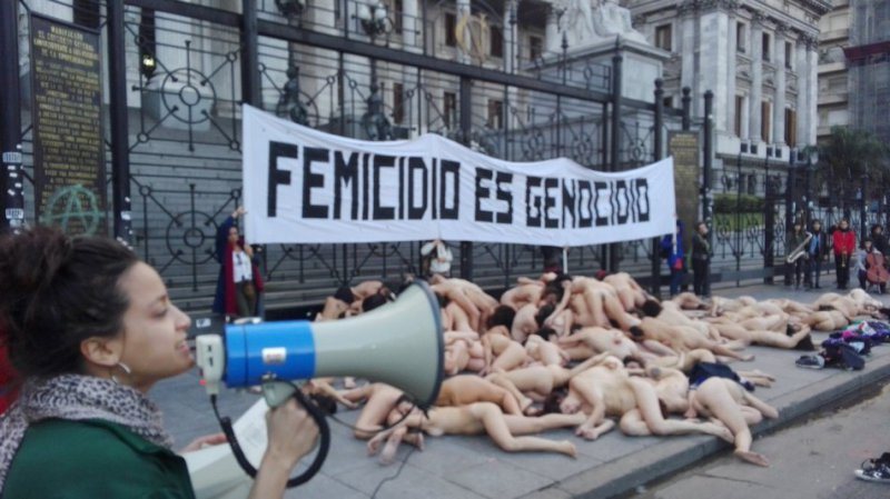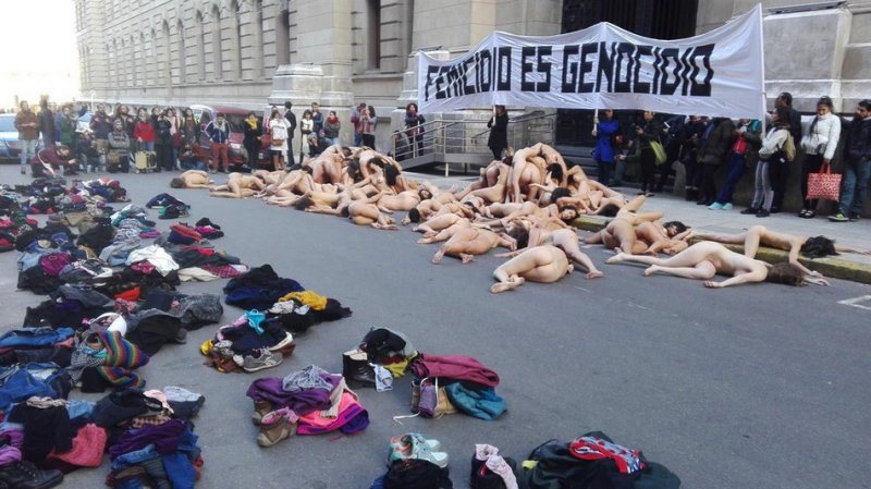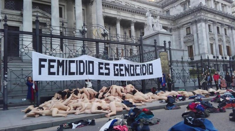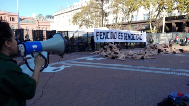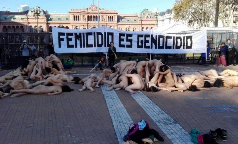 В аргентинском Буэнос-Айресе феминистки устроили массовый протест перед официальной резиденцией президента Маурисио Макри. Более ста женщин полностью разделись в знак протеста против насилия. Они принесли большой плакат с надписью "Фемицид — это геноцид".