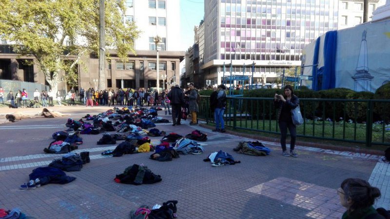 Как стало известно, акция была проведена движением "Художественная сила коммуникативного шока" (Artistic Force of Communicative Shock).Вначале акции женщины молча стояли голыми, а затем собрались у плаката и изобразили гору мёртвых тел. Протест сопровождался живым исполнением классической музыки, во время которого через громкоговоритель озвучивались факты насилия над женщинами в Аргентине.