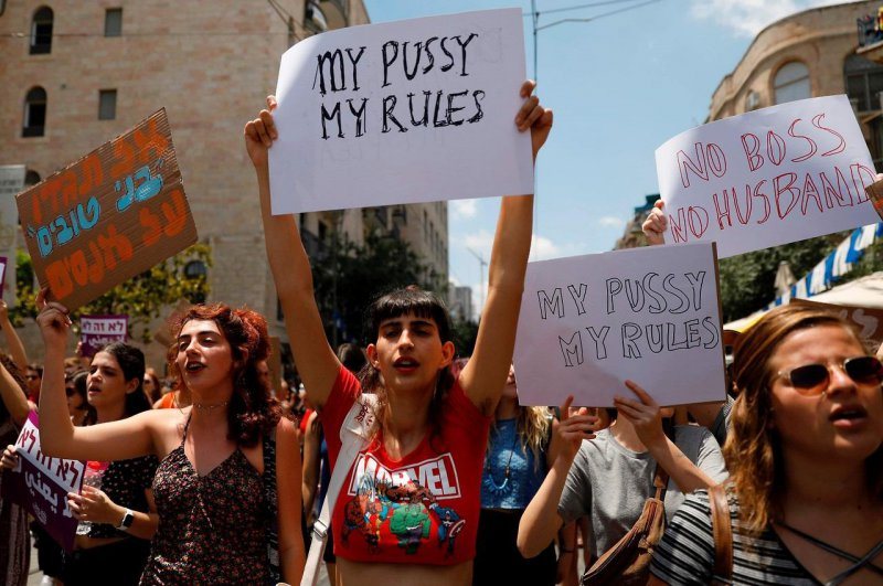 Сотни феминисток собрались в пятницу 2 июня в центре Иерусалима, чтобы пройти "маршем шлюх" (SlutWalk) по главным улицам израильской столицы. Они шли полураздетыми, в "нарядах проституток", с транспарантами и лозунгами о защите женщин от сексуальных домогательств.