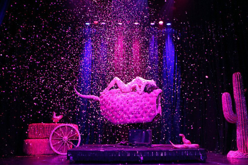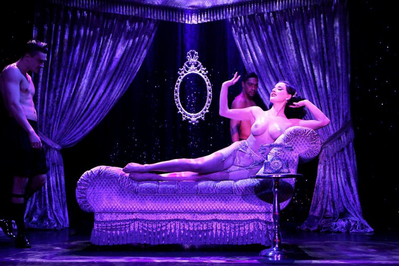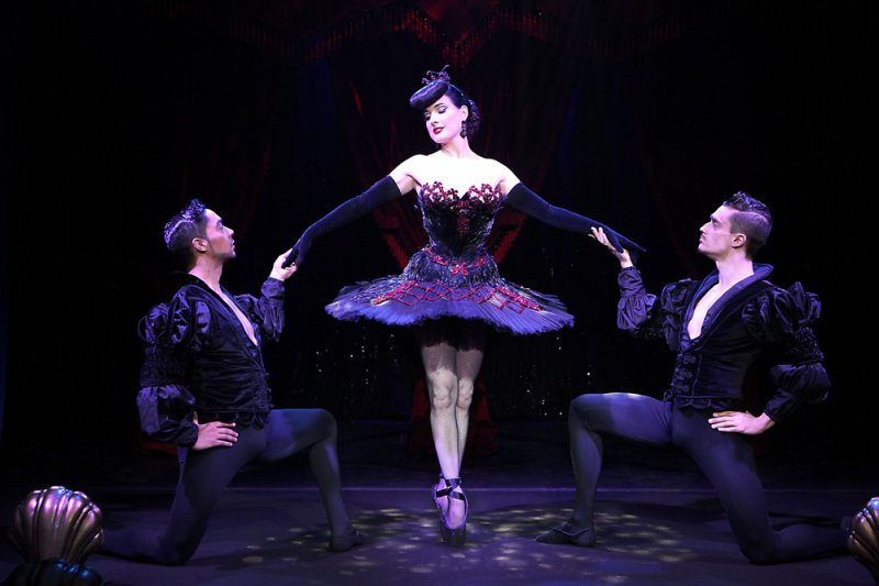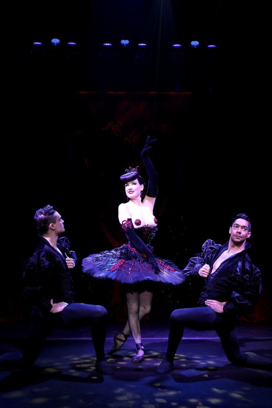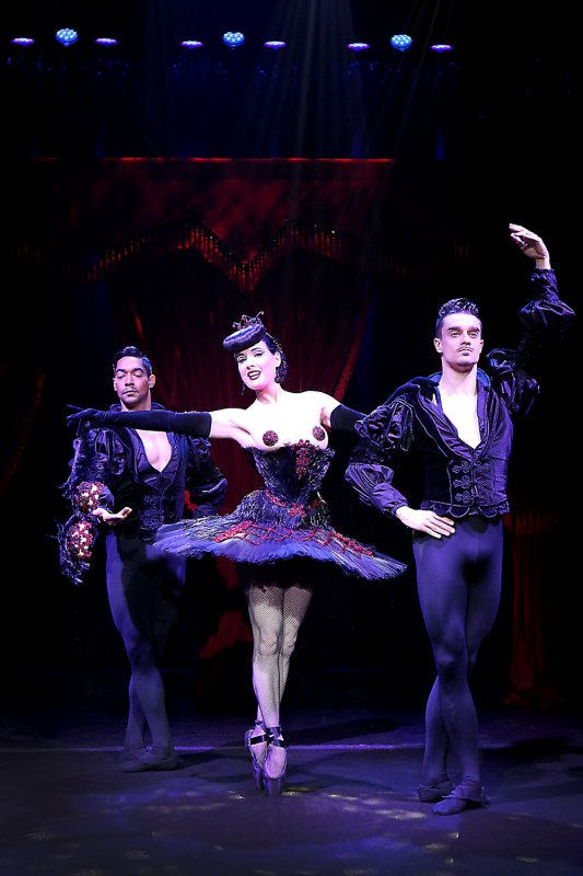 44-летняя американская танцовщица бурлеска, модель, художник по костюмам и актриса Дита Фон Тиз (Dita Von Teese) в своем шоу в театре Метрополитен в Нью-Йорке.
