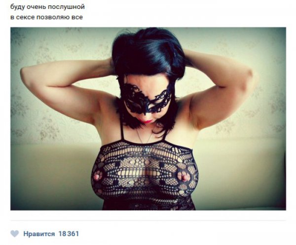 Сегодня мы приготовили для Вас сборник картинок под общим названием «Жещнины хотят секса» 20 (фото). Вы сможете увидеть сколько же различных дам страстно желают заняться сексом с молодыми парнями, о чем без особого стеснения или же неудобства пишут в социальных сетях.