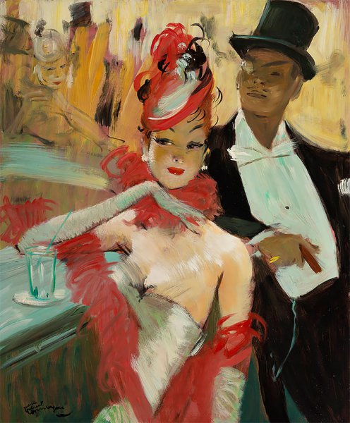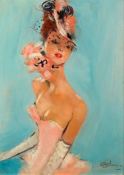 Более того, именно его считают создателем стиля пин-ап, так как нередко на портретах красовались знаменитые в то время балерины и актрисы в полуобнаженном виде и игривых позах.