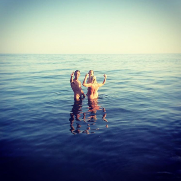 На другой фотографии Алексей Панин отдыхает на пляже с обнаженными девушками.