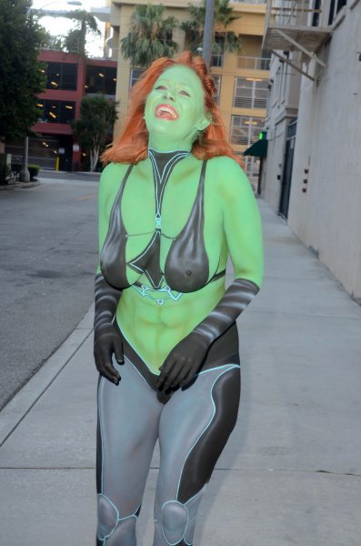 40-летняя американская актриса Мейтленд Уорд (Maitland Ward) решила не заморачиваться с костюмам на Comic-con в Сан-Диего и нарисовала его на своем обнаженном теле.