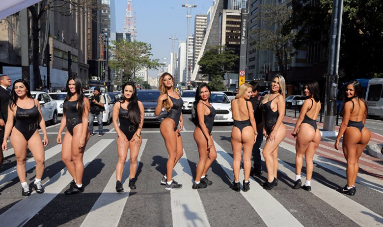 Ежегодно в Бразилии проходит конкурс "Мисс Бум-бум", в рамках которого определяется обладательница самых красивых ягодиц. На улицах Сан-Паулу накануне снова можно было увидеть множество сексуальных девушек в бикини, раздевшихся для фотосессии.