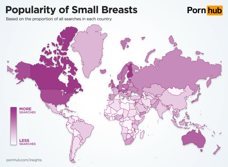 Pornhub провел специальное исследование и узнал о том, какой тип груди больше всего привлекает мужчин по всему миру. Любопытная статистическая информация была опубликована на самом популярном сайте для взрослых.