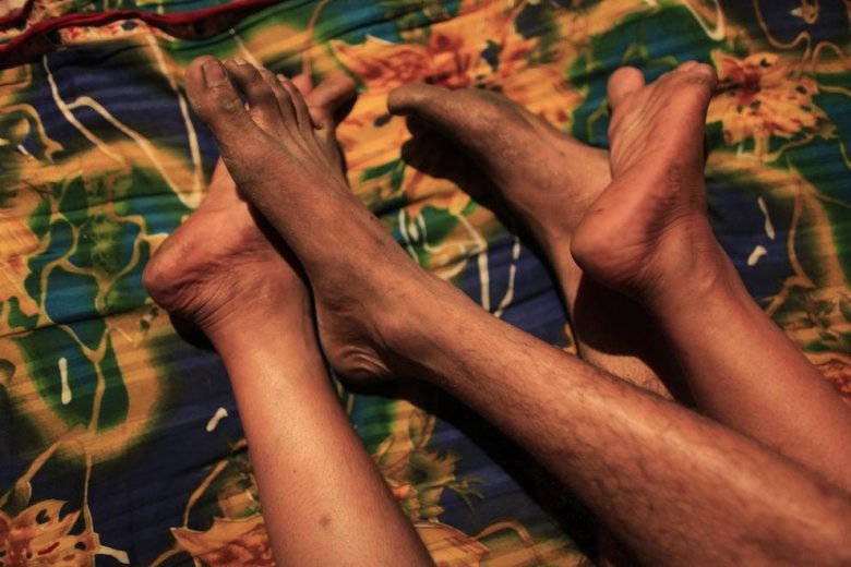 Сплетенье ног Хаши и Бабу. Хаши зарабатывает около 800-1000 так в день (9-12 долларов), обслуживая около 15-20 клиентов за день.