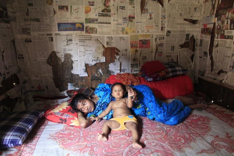 17-летняя Назма отдыхает в своей комнатке с ребенком в борделе в Фаридпуре, Бангладеш.
