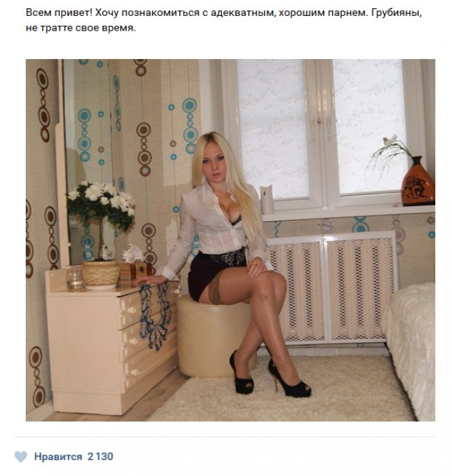 Сегодня мы приготовили для Вас сборник картинок под общим названием «Жещнины хотят секса» 20 (фото). Вы сможете увидеть сколько же различных дам страстно желают заняться сексом с молодыми парнями, о чем без особого стеснения или же неудобства пишут в социальных сетях.