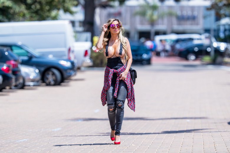 35-летняя бразильская модель Ана Брага (Ana Braga) прогулялась в комбинезоне без бюстгальтера в Малибу.
