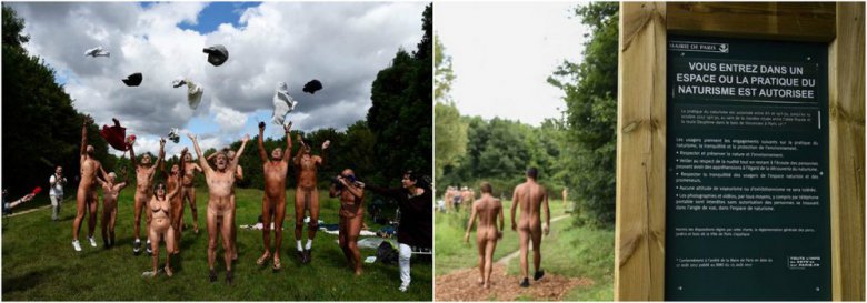 Небольшая тропинка ведет на уединенную полянку возле птичьего заповедника в Венсенском лесу на востоке столицы Франции, где около 10 натуристов наслаждаются солнечным денем на траве. Существует более 400 нудистских пляжах и кемпингах во Франции, где более 2,5 миллионов человек практикуют нудизм. Теперь такое место появилось и во французской столице. Парк будет открыт до 15 октября с 8 утра до 7:30 вечера.