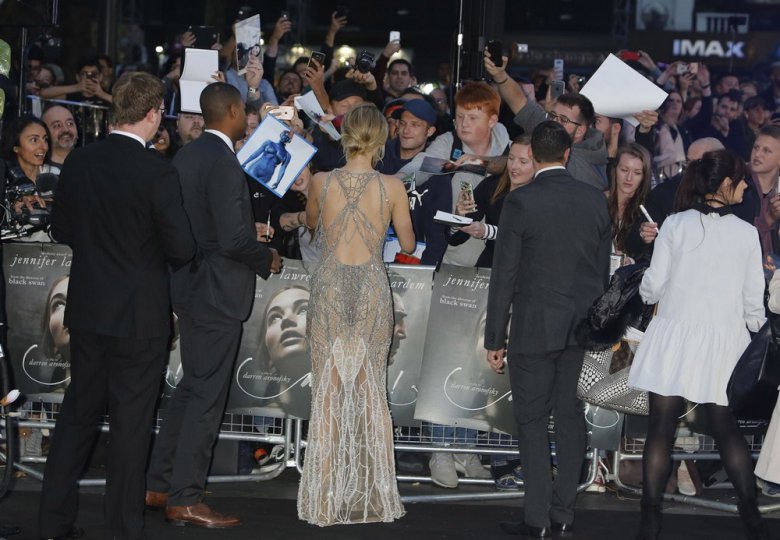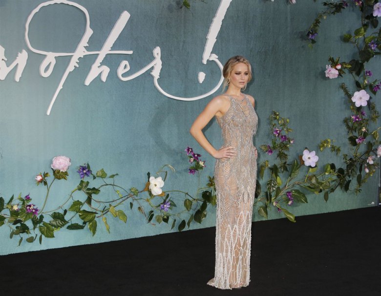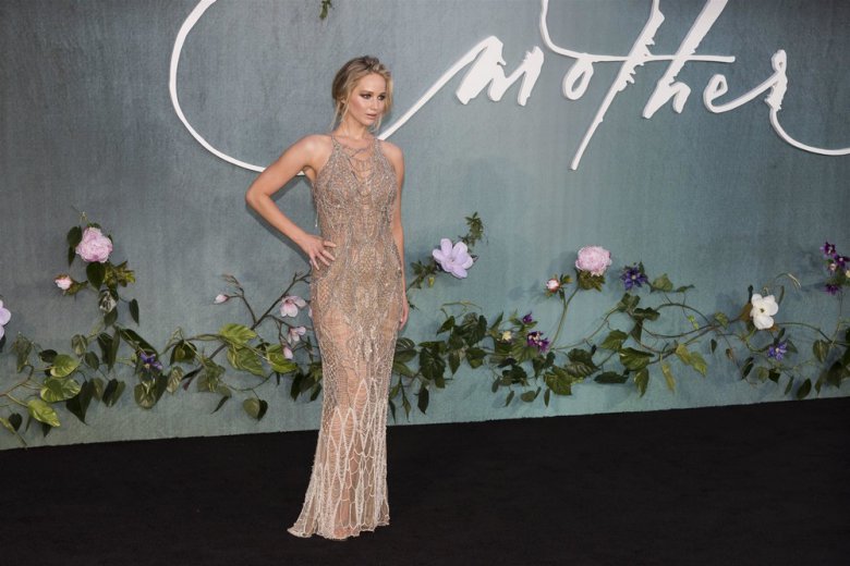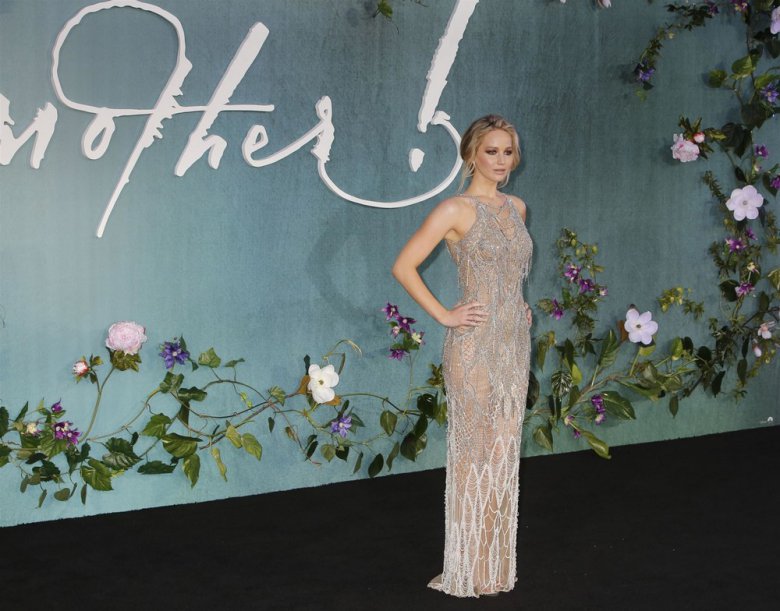 27-летняя американская актриса Дженнифер Лоуренс (Jennifer Lawrence) в просвечивающем платье на премьере ‘Mother!’ в Лондоне.