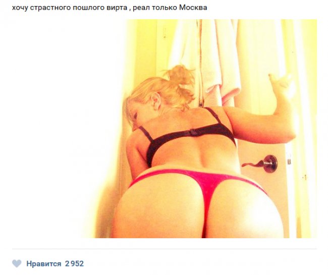 Отдельно хочется отметить не просто наличие такого желания и таких женщин, а то, как они себя предлагают. Посмотрите на фото данных дам, на их позы и их внешний вид. Не сразу становится ясно, хорошо или же плохо попасться таким представительницам слабого пола в минуты их слабости. Мы уверенны, что Вам данный сборник понравится и Вы обязательно будете ждать очередную запись, в которой мы соберем «горячих» женщин из социальных сетей.