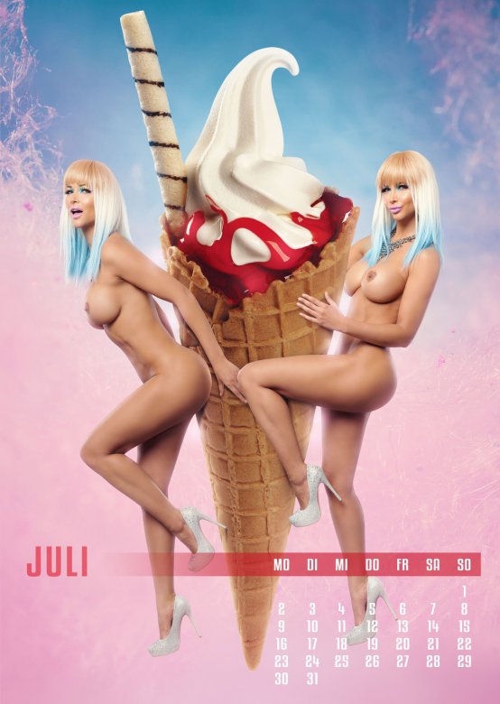 33-летняя немецкая актриса, модель, телеведущая, ди-джей, певица Микаэла Шефер (Micaela Schäfer) и ее силиконовые подруги разделись для календаря на 2018 год.