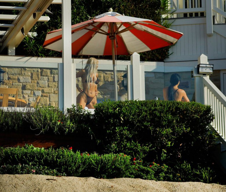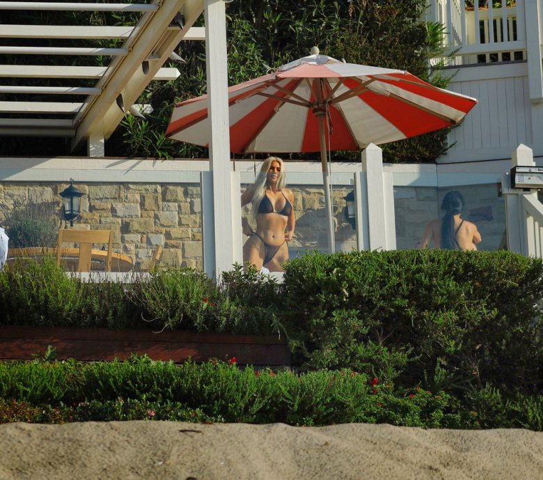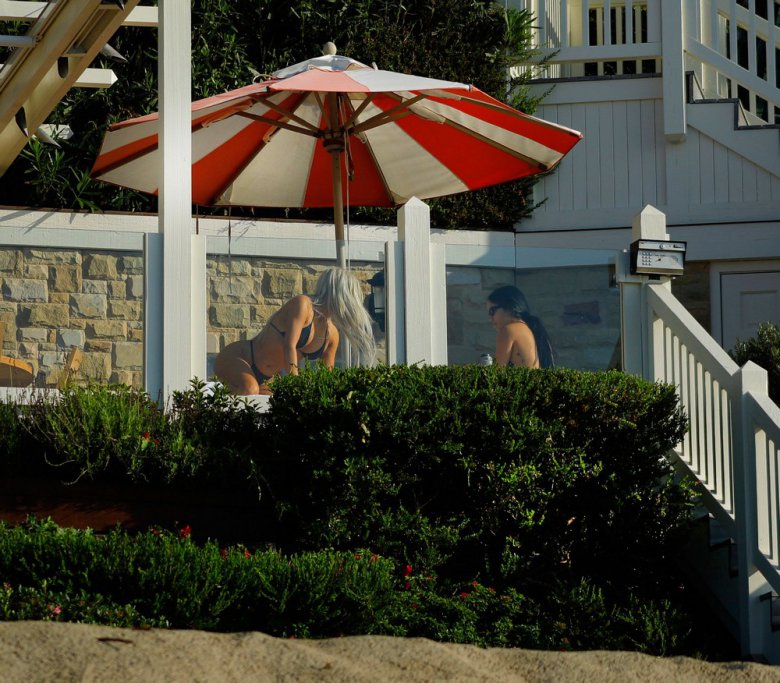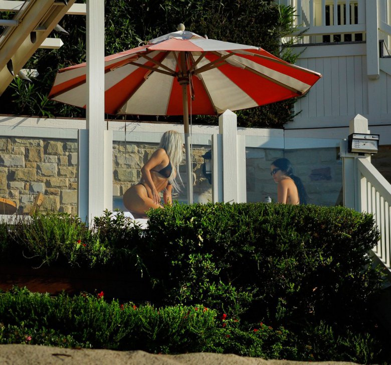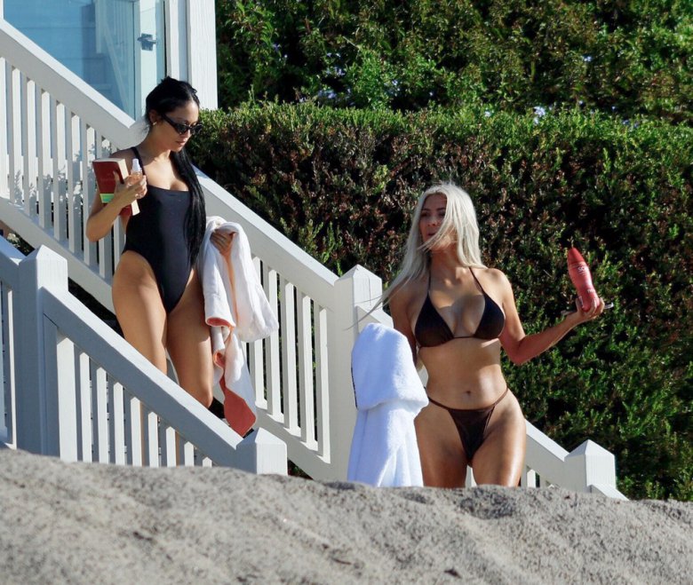 36-летняя американская звезда реалити-шоу, актриса и фотомодель Ким Кардашян (Kim Kardashian) наслаждается отдыхом с подругой на пляже в Малибу.