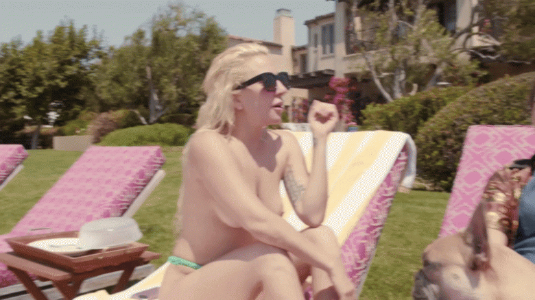 31-летняя американская певица и актриса Леди Гага (Lady Gaga) топлес в документальном фильме Gaga: Five Foot Two (2017).