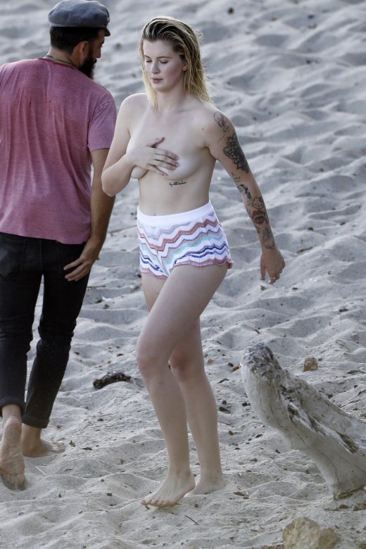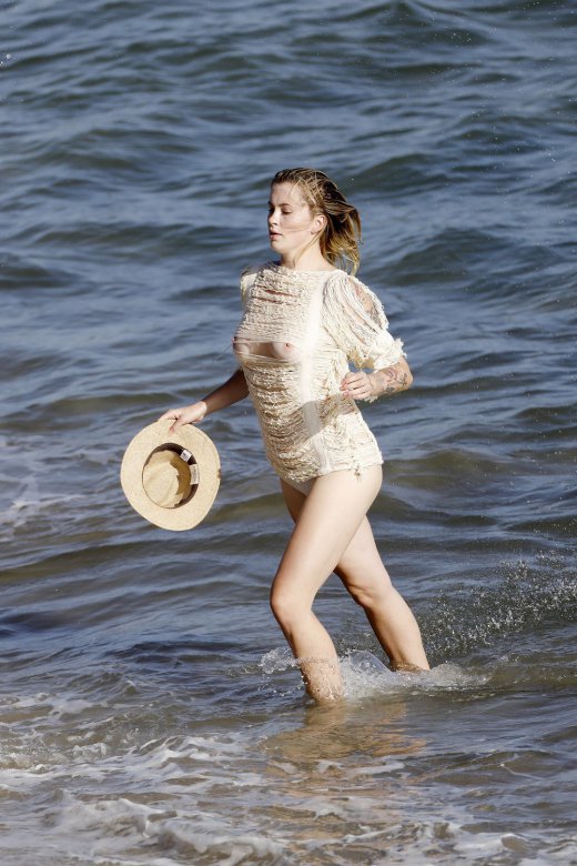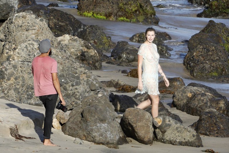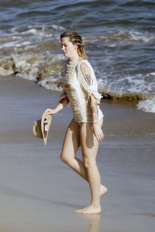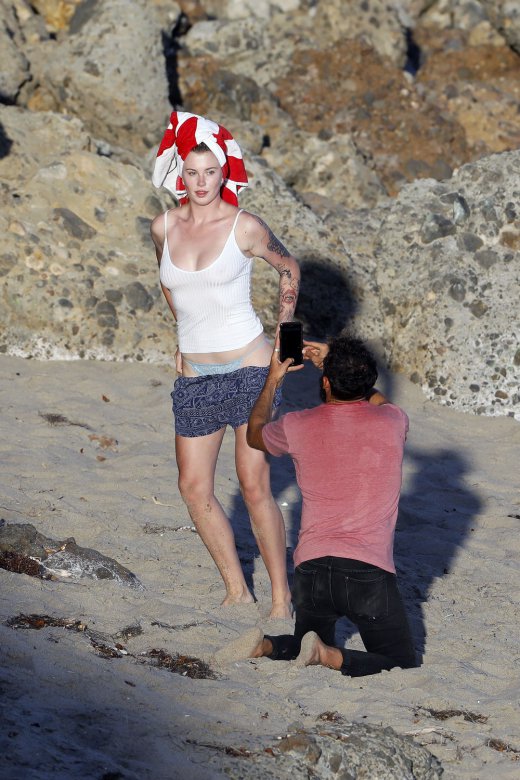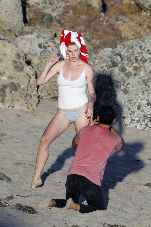 21-летняя американская фотомодель и актриса Айрленд Болдуин (Ireland Baldwin) (дочь актеров Ким Бейсингер и Алека Болдуина) позирует на пляже в Малибу.