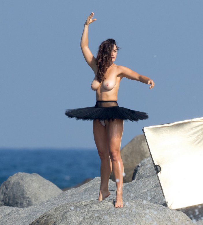 30-летняя американская модель Мила Далбесио (Myla Dalbesio) позирует топлес