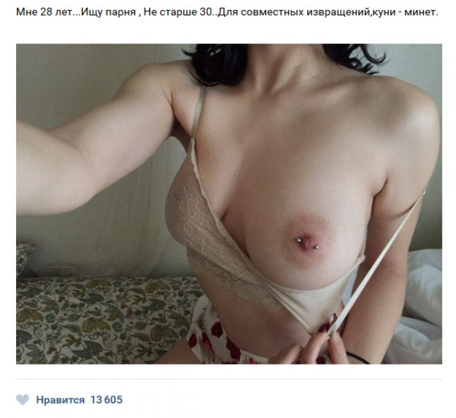 Сегодня мы приготовили для Вас сборник картинок под общим названием «Жещнины хотят секса» 20 (фото). Вы сможете увидеть сколько же различных дам страстно желают заняться сексом с молодыми парнями, о чем без особого стеснения или же неудобства пишут в социальных сетях.