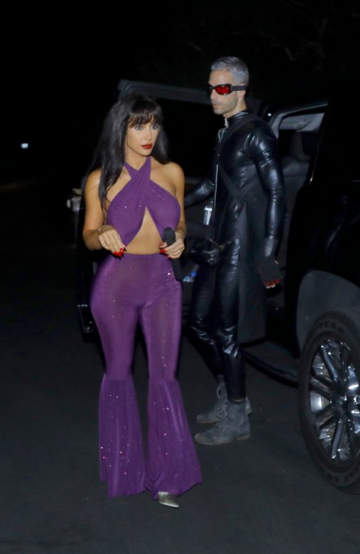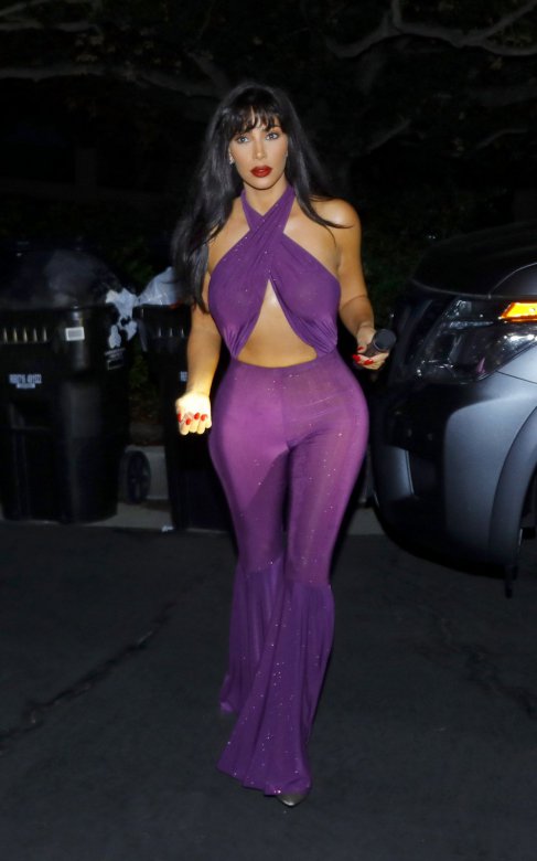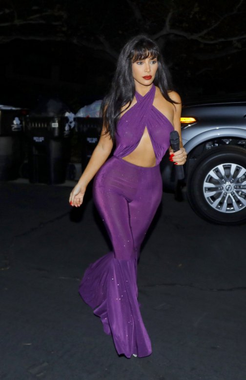 37-летняя американская звезда реалити-шоу, актриса и фотомодель Ким Кардашян (Kim Kardashian) в образе покойной певицы Селены Кинтанилья-Перес (Selena Quintanilla-Perez) на вечеринке в Лос-Анджелесе.
