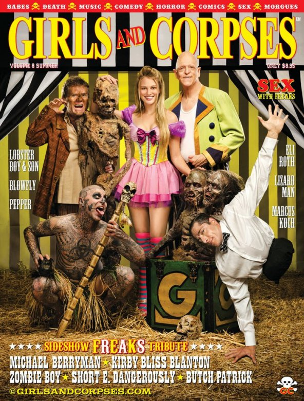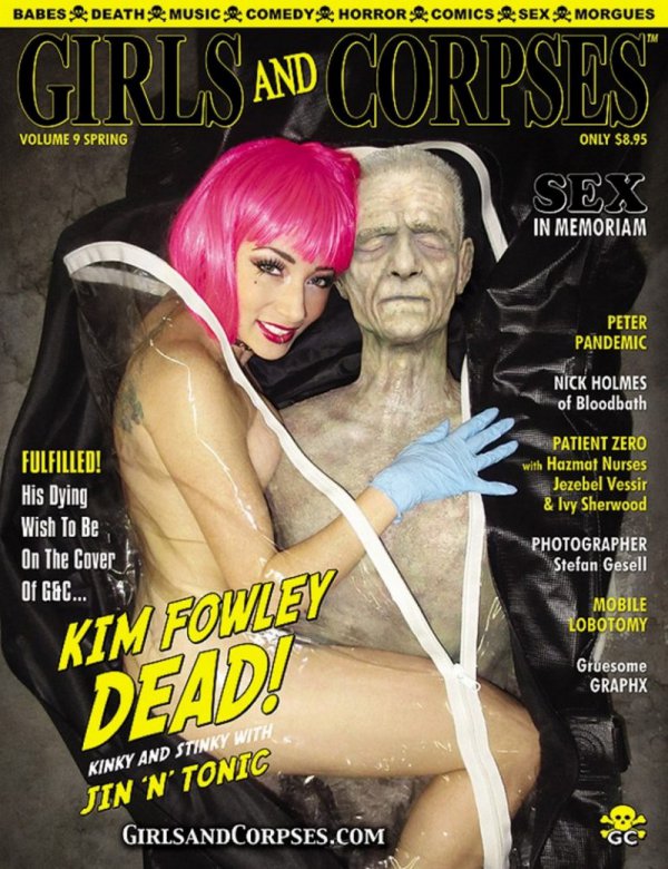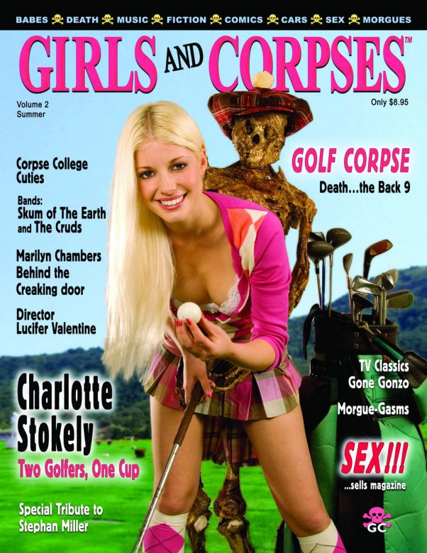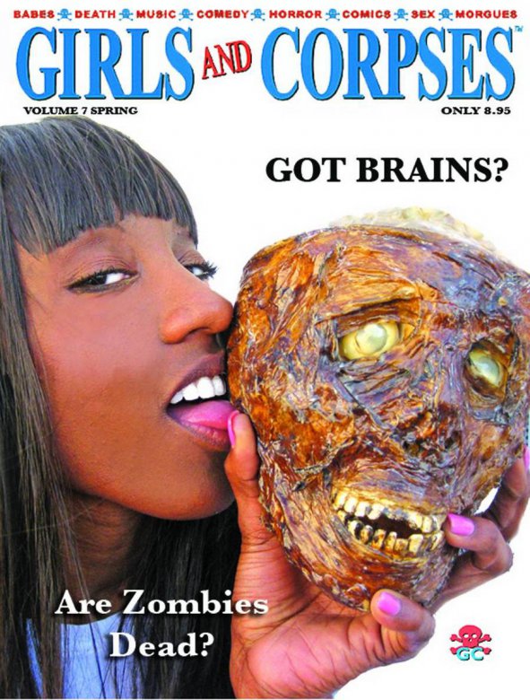 Представьте, что будет, если смешать «Ночь живых мертвецов» и журнал Maxim в равных пропорциях. Получится феерическое издание Girls and Corpses (буквально «Девушки и трупы»). Основатель журнала, Роберт Стивен Райн, заявляет, что больше всего в своей жизни он любит женщин и фильмы ужасов категории B (в которых сам, кстати, регулярно снимается). Однажды, после съемок в очередном трэш-слэшере про восставших мертвецов, ему пришла идея совместить эти два увлечения и добавить сюда немного мечты — стать новым Хью Хефнером. Получилась лучшая в мире иллюстрация эроса и танатоса.