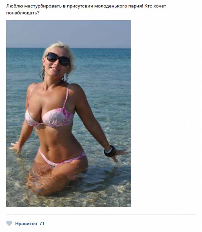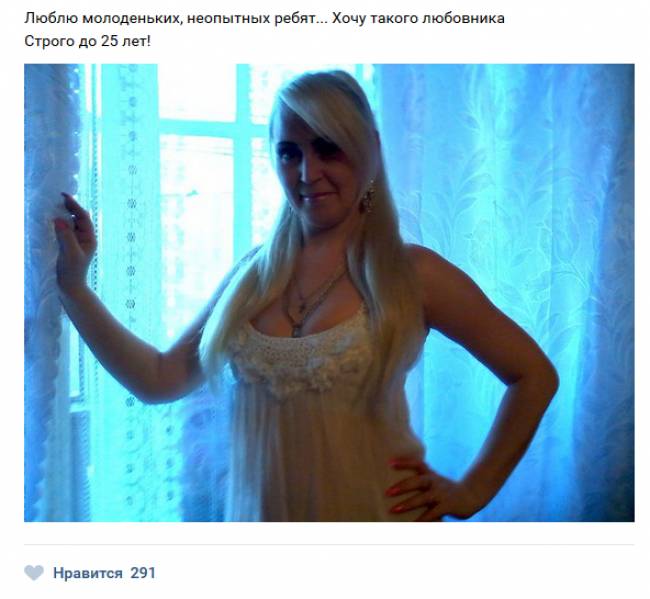 Сегодня мы приготовили для Вас сборник картинок под общим названием «Жещнины хотят секса» 20 (фото). Вы сможете увидеть сколько же различных дам страстно желают заняться сексом с молодыми парнями, о чем без особого стеснения или же неудобства пишут в социальных сетях.