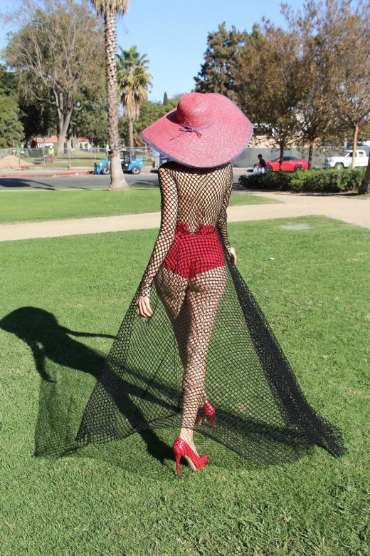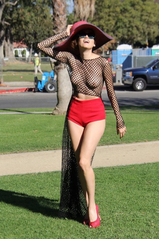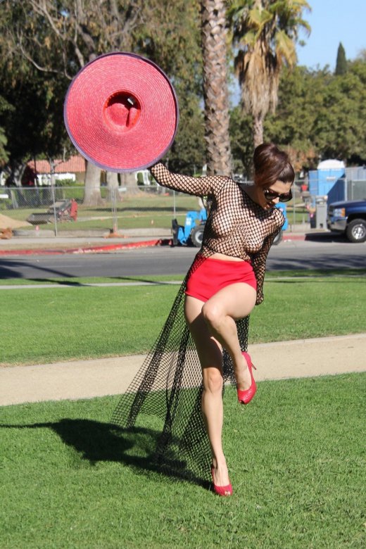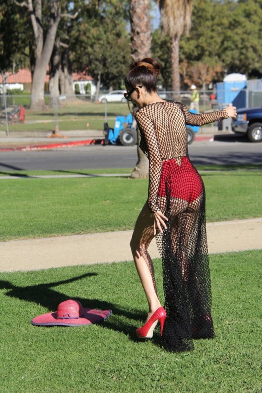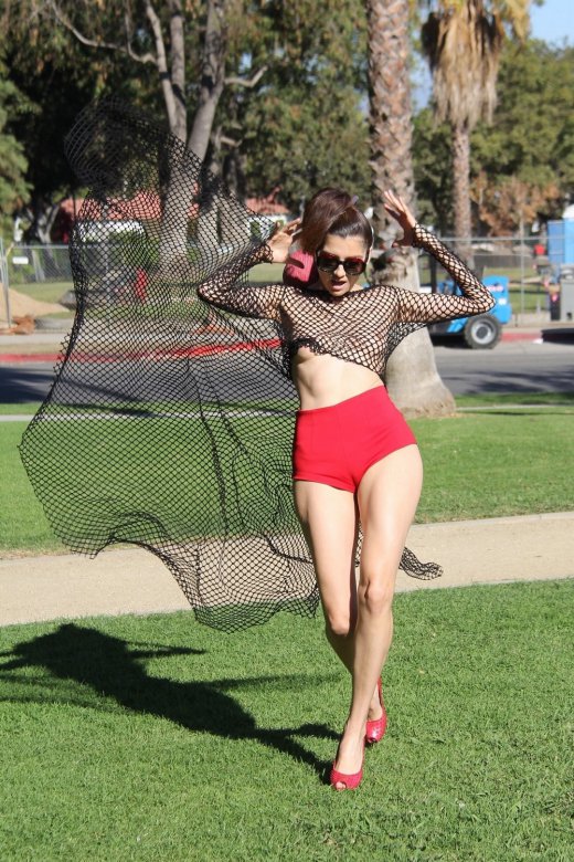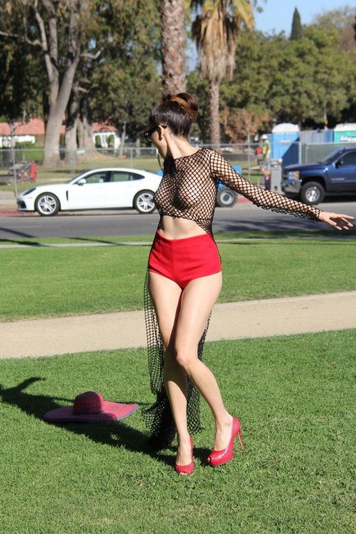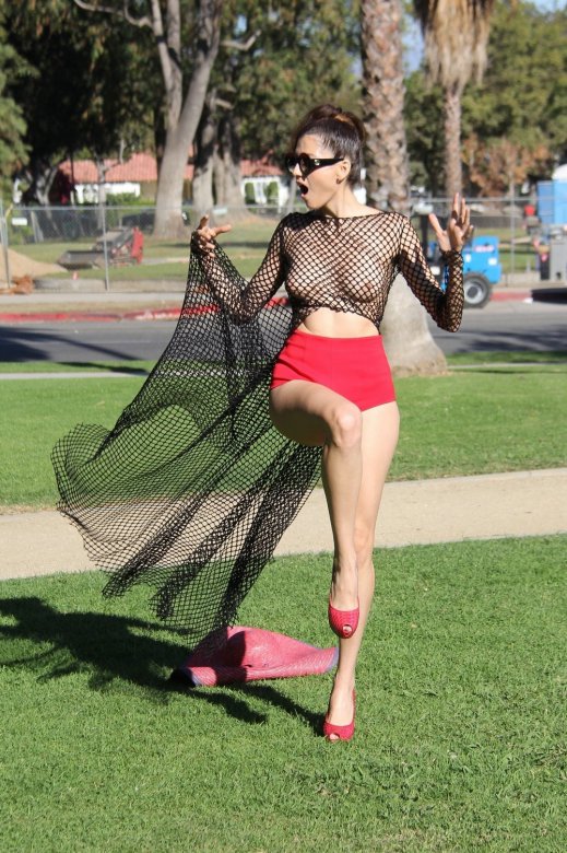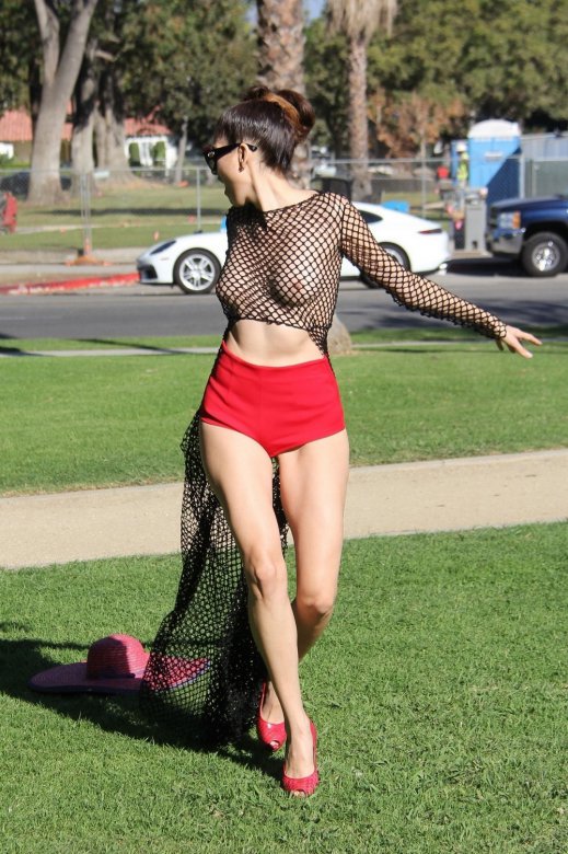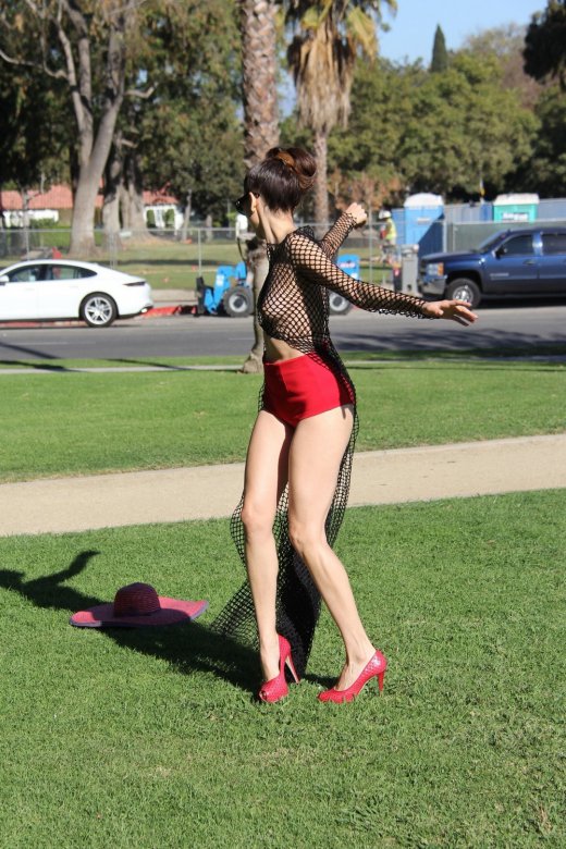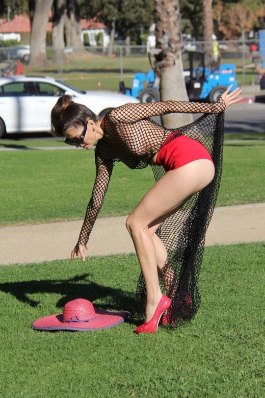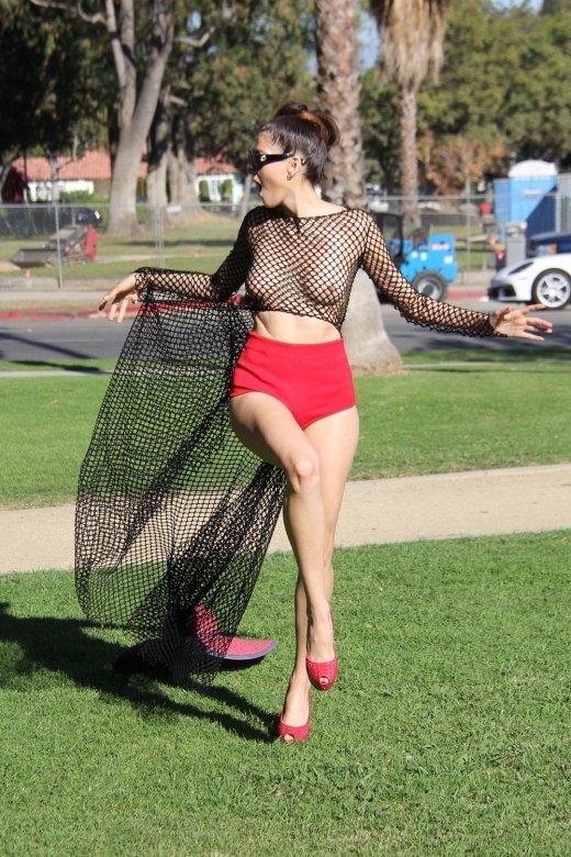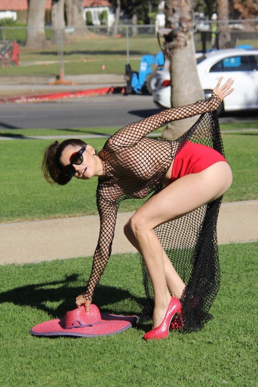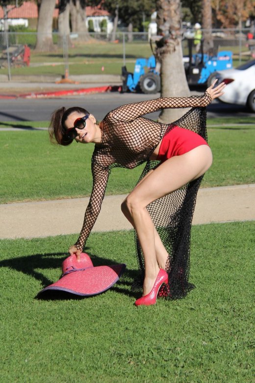 36-летняя модель и актриса Бланка Бланко (Blanca Blanco) в откровенном наряде позирует в парке в Лос-Анджелесе.