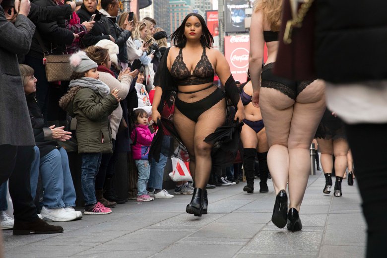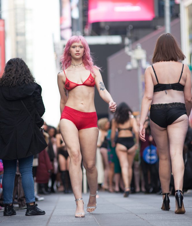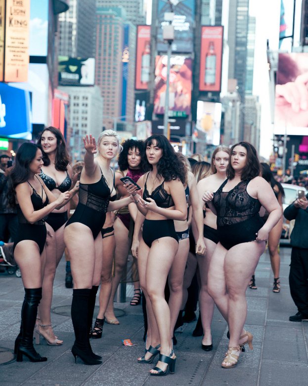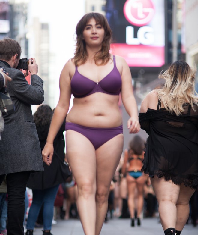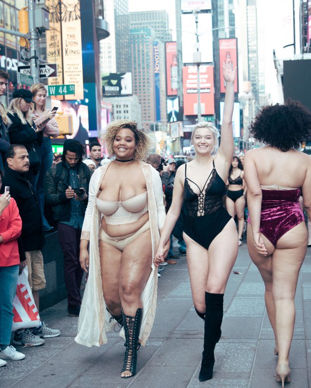 Показ прошёл прямо на Таймс-сквер. В дефиле приняли участие 25 девушек разных размеров, а их публикой были прохожие люди.