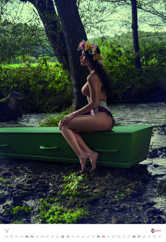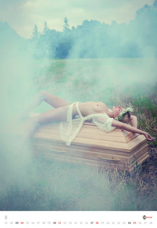Польская компания Lindner, которая занимается производством ЭКО-гробов, выпустила очередной горячий календарь на 2018 год. По традиции в календаре обнаженные модели позируют на фоне продукции. Подобные календари производители гробов выпускают с 2009 года, они пользуются спросом и с каждым годом их популярность растет.