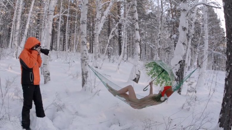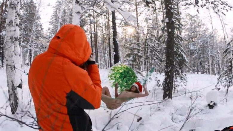 22-летняя российская модель Лиана Клевцова в зимнем лесу