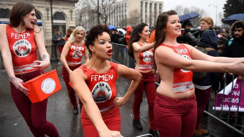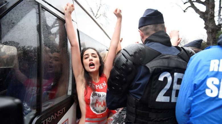 В минувшее воскресенье в Париже прошел митинг против абортов «Марш за жизнь», который организовала католическая группа. Митингу пытались помешать активистки феминистского движения Femen. Полуголые дамы выбежали с криками: «Аборты — для всех», но их быстро оттеснила полиция.