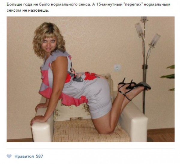 Сегодня мы приготовили для Вас сборник картинок под общим названием «Жещнины хотят секса» 20 (фото). Вы сможете увидеть сколько же различных дам страстно желают заняться сексом с молодыми парнями, о чем без особого стеснения или же неудобства пишут в социальных сетях.