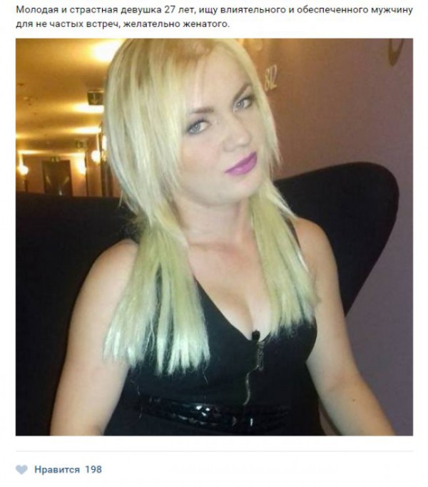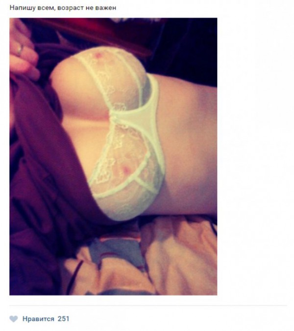 Сегодня мы приготовили для Вас сборник картинок под общим названием «Жещнины хотят секса» 20 (фото). Вы сможете увидеть сколько же различных дам страстно желают заняться сексом с молодыми парнями, о чем без особого стеснения или же неудобства пишут в социальных сетях.