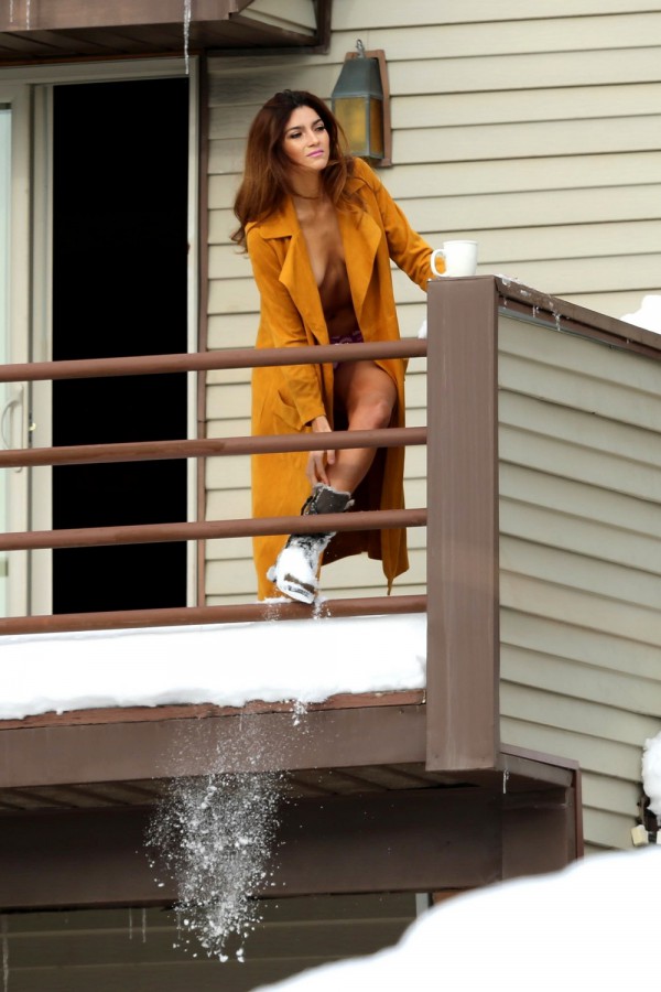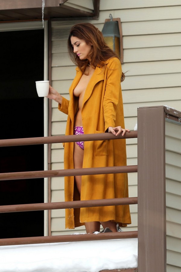 37-летняя Бланка Бланко (Blanca Blanco) топлес на балконе своей частной резиденции на горнолыжном курорте в Парк-Сити.
