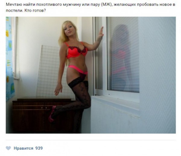 Отдельно хочется отметить не просто наличие такого желания и таких женщин, а то, как они себя предлагают. Посмотрите на фото данных дам, на их позы и их внешний вид. Не сразу становится ясно, хорошо или же плохо попасться таким представительницам слабого пола в минуты их слабости. Мы уверенны, что Вам данный сборник понравится и Вы обязательно будете ждать очередную запись, в которой мы соберем «горячих» женщин из социальных сетей.