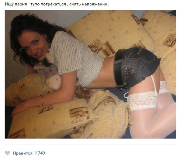 Сегодня мы приготовили для Вас сборник картинок под общим названием «Жещнины хотят секса» 20 (фото). Вы сможете увидеть сколько же различных дам страстно желают заняться сексом с молодыми парнями, о чем без особого стеснения или же неудобства пишут в социальных сетях.