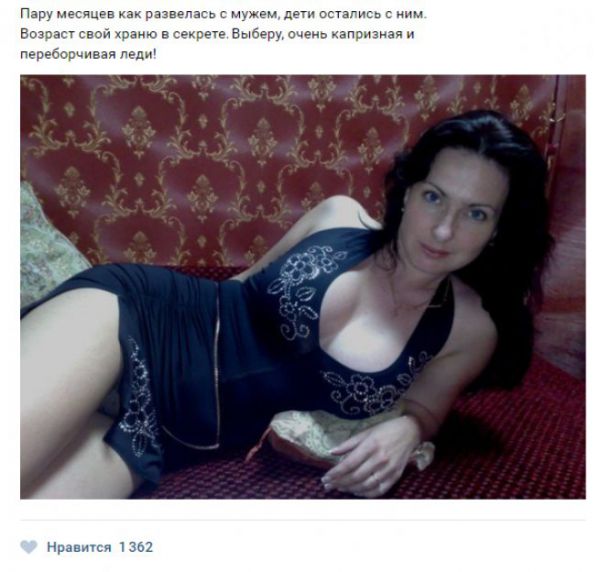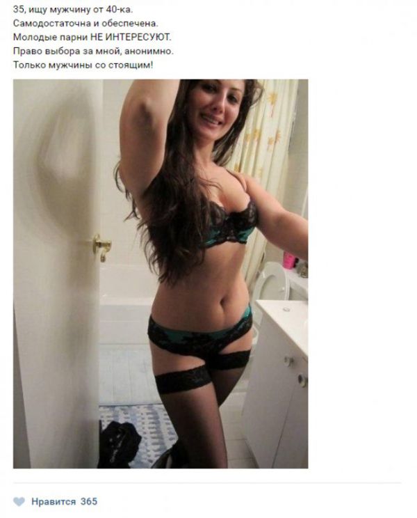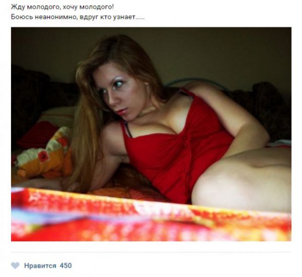 Сегодня мы приготовили для Вас сборник картинок под общим названием «Жещнины хотят секса» 20 (фото). Вы сможете увидеть сколько же различных дам страстно желают заняться сексом с молодыми парнями, о чем без особого стеснения или же неудобства пишут в социальных сетях.