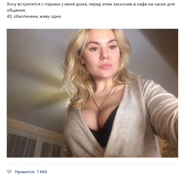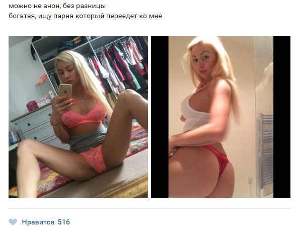 Отдельно хочется отметить не просто наличие такого желания и таких женщин, а то, как они себя предлагают. Посмотрите на фото данных дам, на их позы и их внешний вид. Не сразу становится ясно, хорошо или же плохо попасться таким представительницам слабого пола в минуты их слабости. Мы уверенны, что Вам данный сборник понравится и Вы обязательно будете ждать очередную запись, в которой мы соберем «горячих» женщин из социальных сетей.