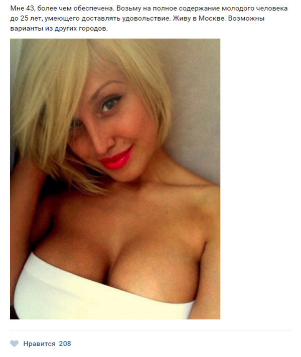 Сегодня мы приготовили для Вас сборник картинок под общим названием «Жещнины хотят секса» 20 (фото). Вы сможете увидеть сколько же различных дам страстно желают заняться сексом с молодыми парнями, о чем без особого стеснения или же неудобства пишут в социальных сетях.