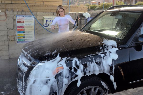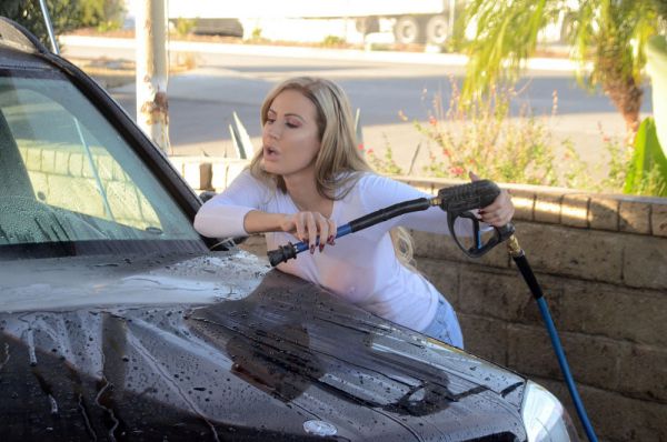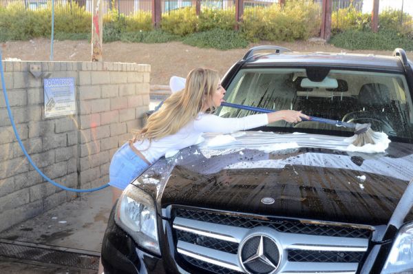 36-летняя бразильская модель Ана Брага (Ana Braga) помыла личный Мерседес и немного себя на автомойке в Калабасасе, Калифорния.