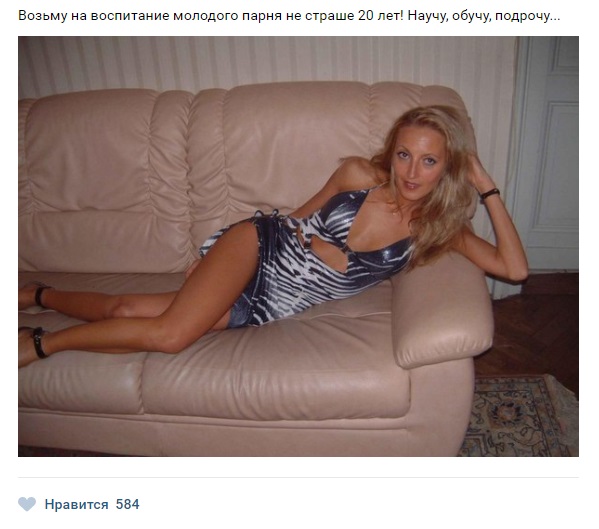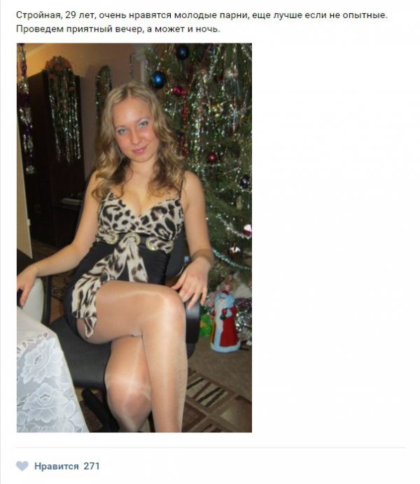 Сегодня мы приготовили для Вас сборник картинок под общим названием «Жещнины хотят секса» 20 (фото). Вы сможете увидеть сколько же различных дам страстно желают заняться сексом с молодыми парнями, о чем без особого стеснения или же неудобства пишут в социальных сетях.