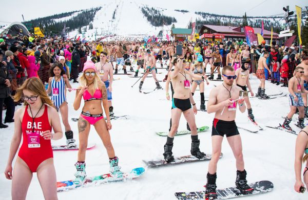 На горнолыжном курорте в поселке Шерегеш в пятый раз прошел фестиваль Grelka Fest, в рамках которого сотни участников спустились с горы Зеленая в полуголом виде. Фотограф Евгений Золотухин опубликовал в своем блоге в "Живом журнале" фотографии с мероприятия.