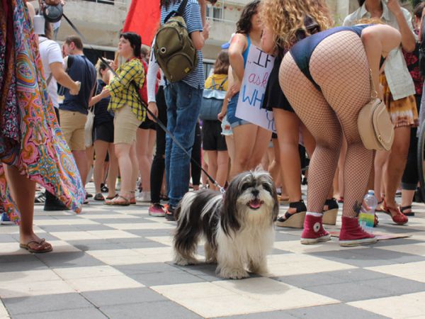 Участники марша вышли на улицы Тель-Авива, чтобы отстоять свое право носить совершенно любую одежду и в то же время не подвергаться сексуальным домогательствам или обвинениям в распущенности. В мероприятии приняли участие представительницы местных феминистических движений.