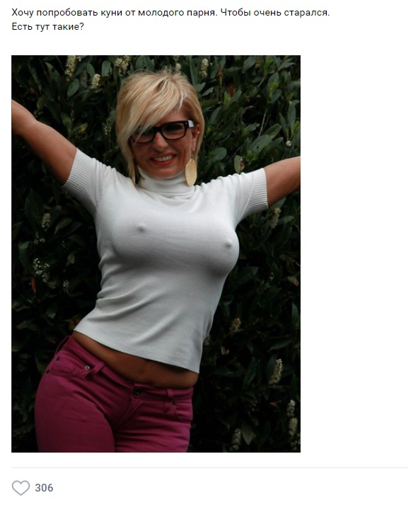 Сегодня мы приготовили для Вас сборник картинок под общим названием «Жещнины хотят секса» 20 (фото). Вы сможете увидеть сколько же различных дам страстно желают заняться сексом с молодыми парнями, о чем без особого стеснения или же неудобства пишут в социальных сетях.