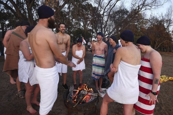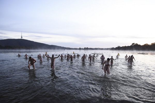 Пока у нас лето, в Австралии зима. До нашей зимы австралийской конечно далеко, но для них погода довольно прохладная. Несмотря на это, десятки австралийцев искупались на рассвете голышом в озере Бёрли-Гриффин в Канберре, чтобы отметить самый короткий день в году.