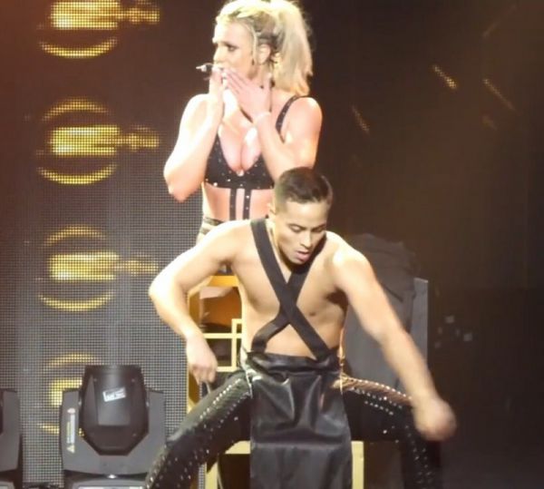 36-летняя американская поп-певица, танцовщица и киноактриса Бритни Спирс (Britney Spears) не уследила за своим костюмом и засветила сосок во время выступления в Оксон Хилл.